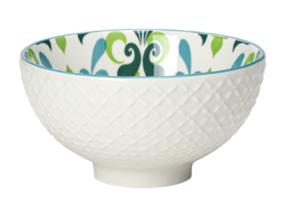 Teal filigree Bowl- Porcelain 8 oz 4.5" Diameter