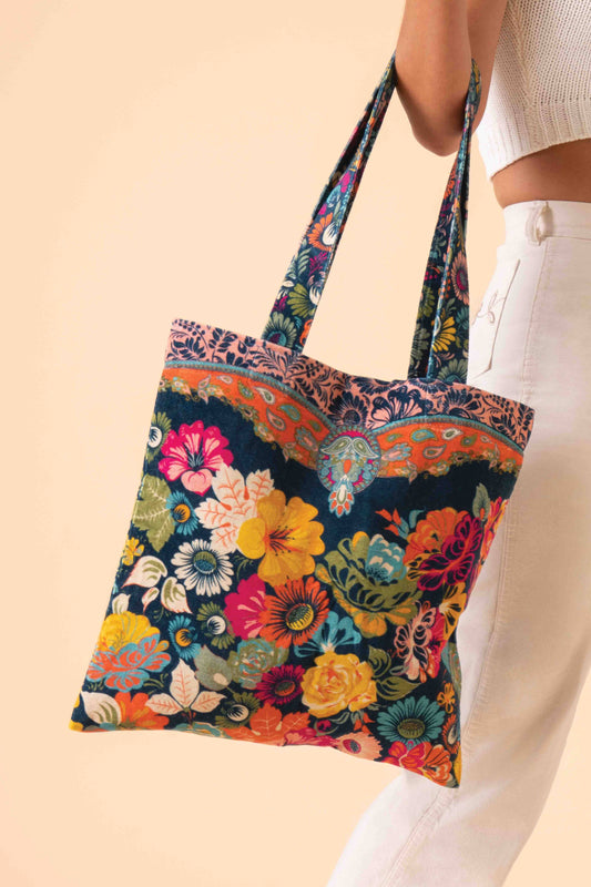 Velvet Tote Bag - Vintage Floral, Ink