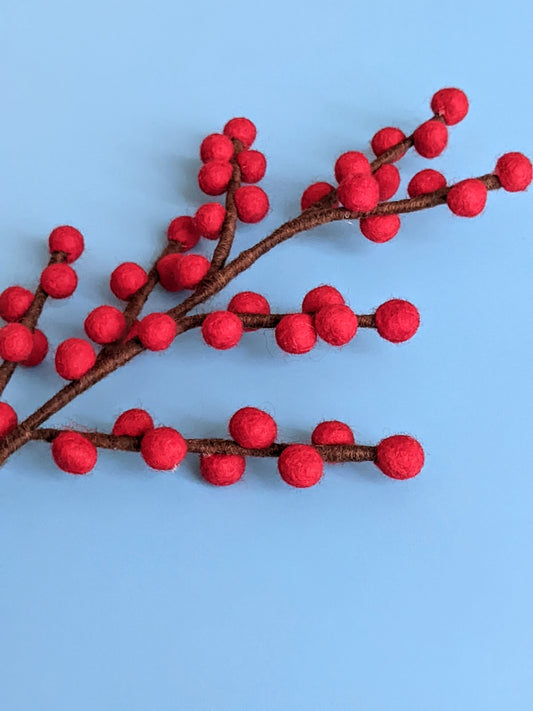 Red Felt Berry Branch