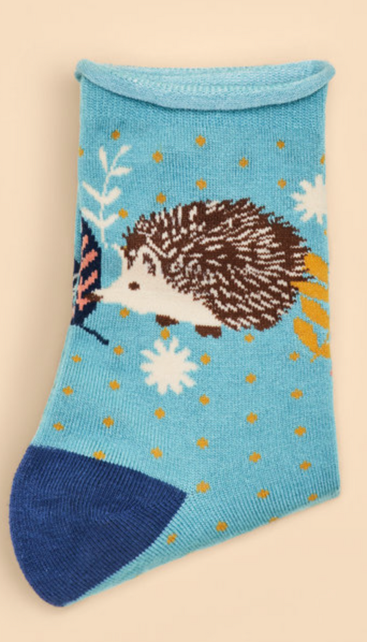 Hedgehog Hunting in Leaves Ankle Socks - Ice