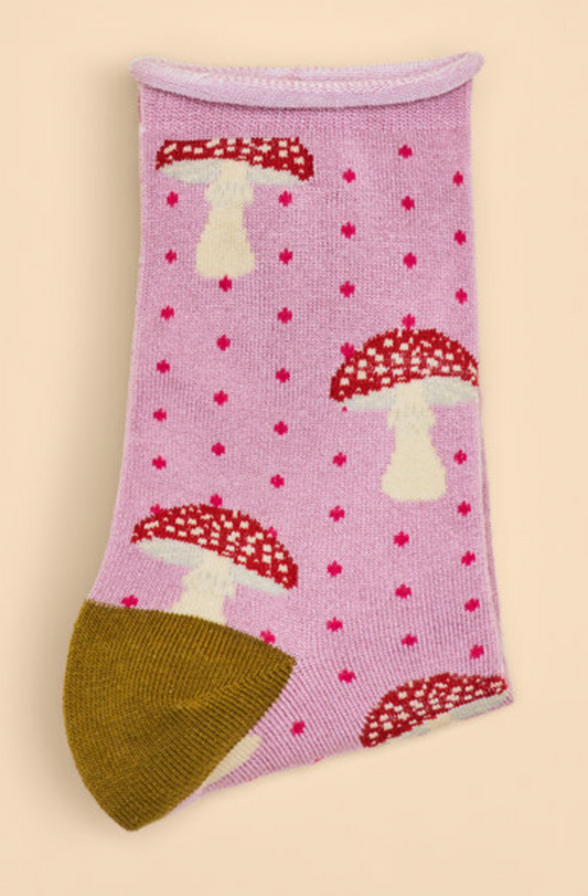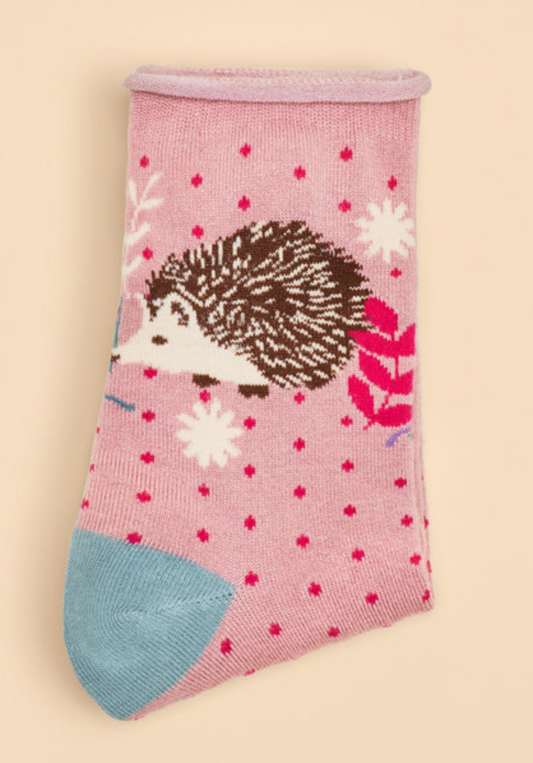 Hedgehog Hunting in Leaves Ankle Socks - Petal