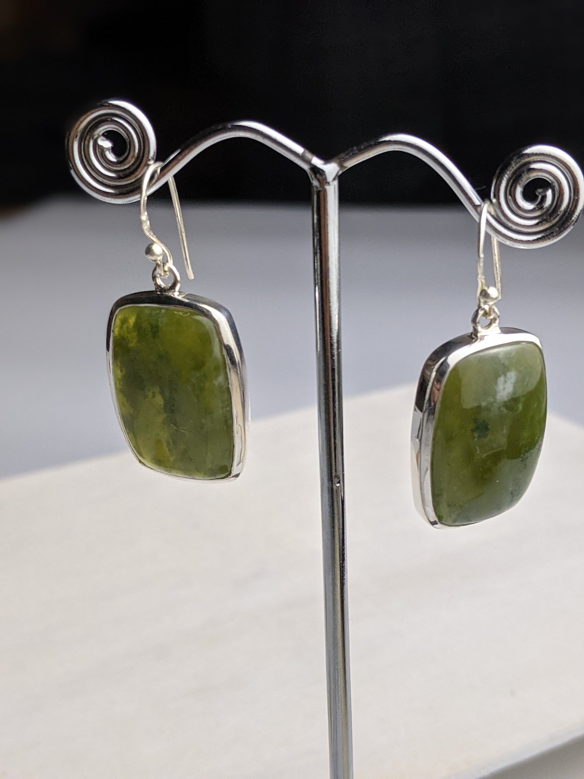 A wide statement rectangular earring with a solid sterling silver setting.