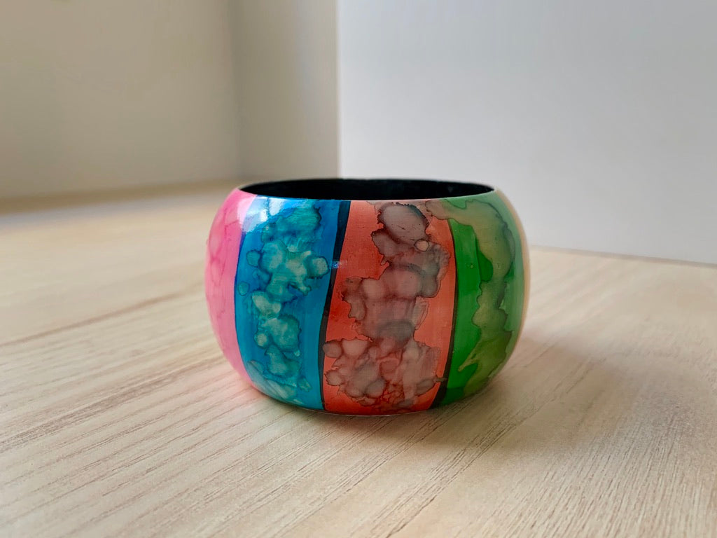 Effortlessly boho chic. This rainbow bangle style bracelet features an array of watercolour pattern for a colourful effect.