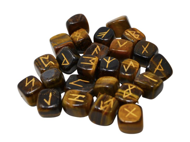 Unlock the secrets of the ancients with these Tiger's Eye Runes! Hand-carved with symbols of the Norse alphabet, these powerful talismans will give you the focus and clarity to understand the mysteries of the universe. They're a real eye-catcher, too!