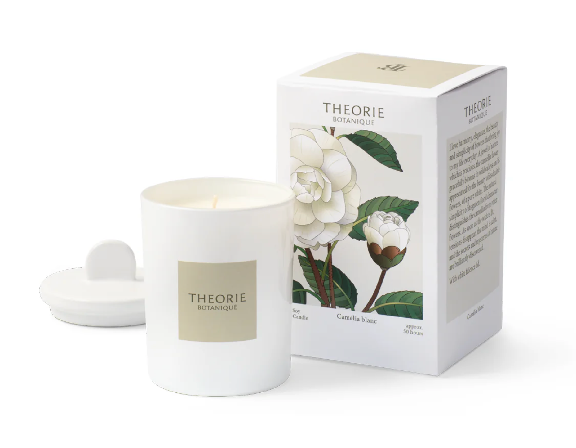 I love harmony, elegance, the beauty and simplicity of flowers that bring joy to my life everyday. A jewel of nature which is precious, the camellia flower gracefully blooms in wild valleys and is appreciated for the beauty of its double flowers, of a pure white. The natural simplicity of its green floral character distinguishes the camellia from other flowers. As soon as the wick is lit, tensions disappear, the mind is calm, and the secrets and mysteries of nature are brilliantly discovered.